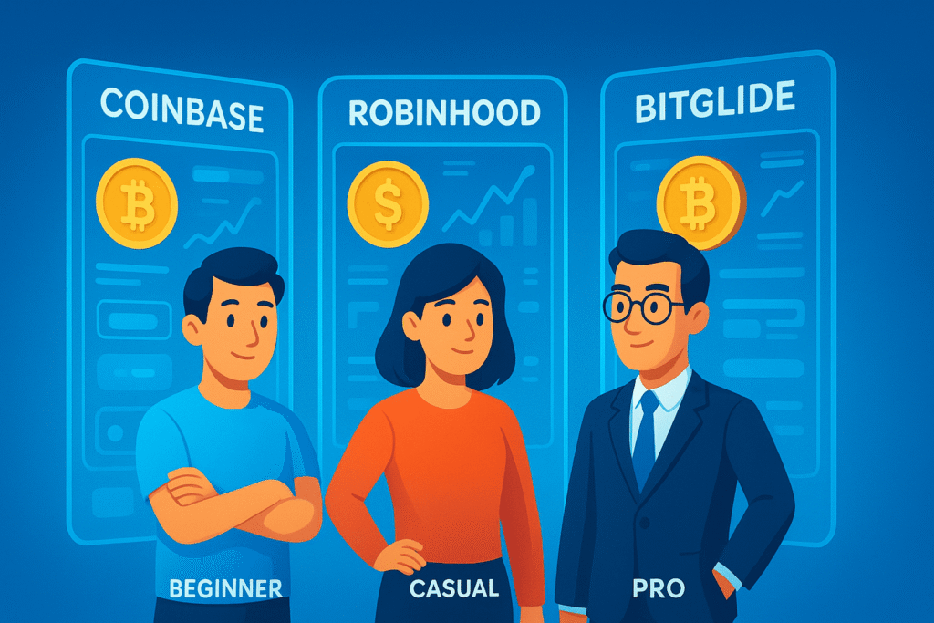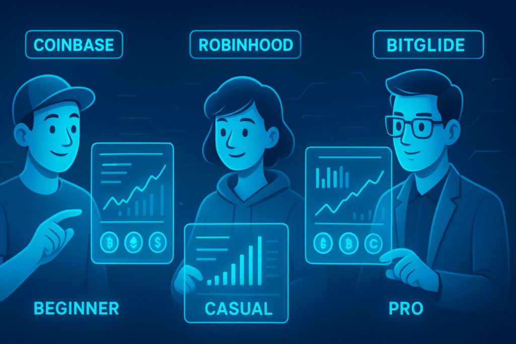 The U.S. crypto trading scene has changed fast, and traders now have more choices than ever. Coinbase remains a trusted name for beginners, Robinhood attracts users who want fast, simple trading, and BitGlide — the newest player — is trying to combine low fees with a modern, pro-style interface. With each app claiming to be the best, it can get confusing.